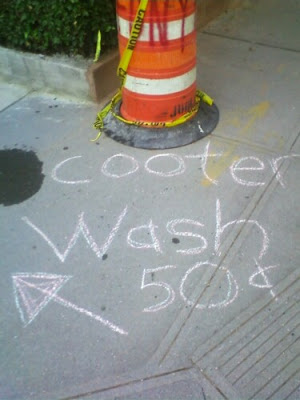 My wife and I vandalized this chalk-written sign for a “SCOOTER WASH”
